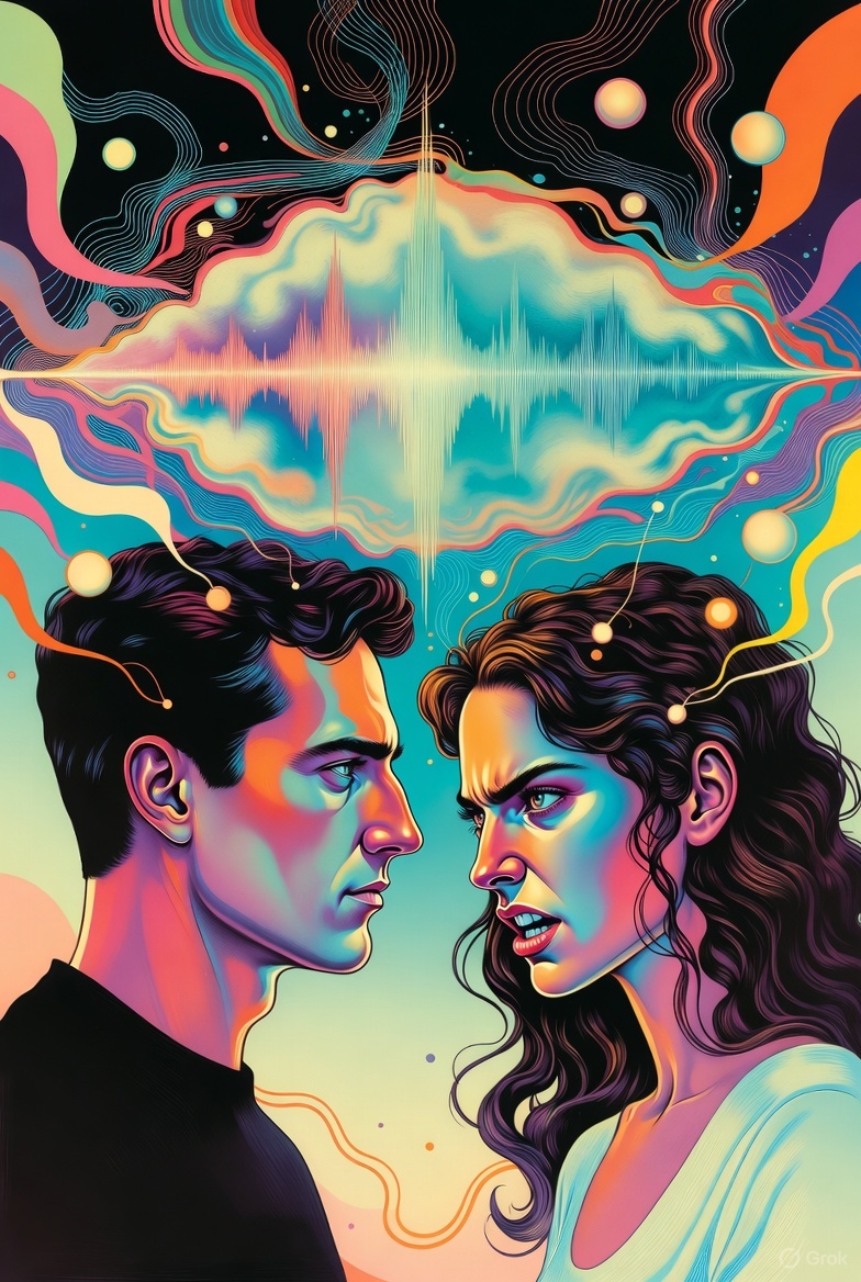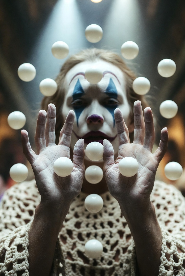 Like orbs surrounding white clown hands in a repeated diagram. Imagine a crocheted blanket, but it’s in you head. A show you are in yet sharing space with a polarizing pattern there to imprint it’s existence upon like a friend who you forgot about and think it is your enemy or abductor yet actually a…